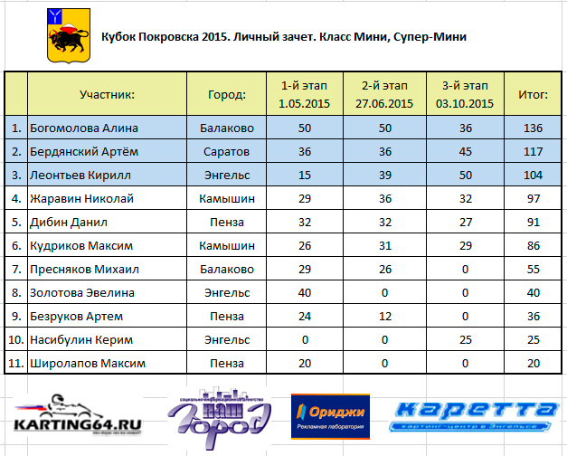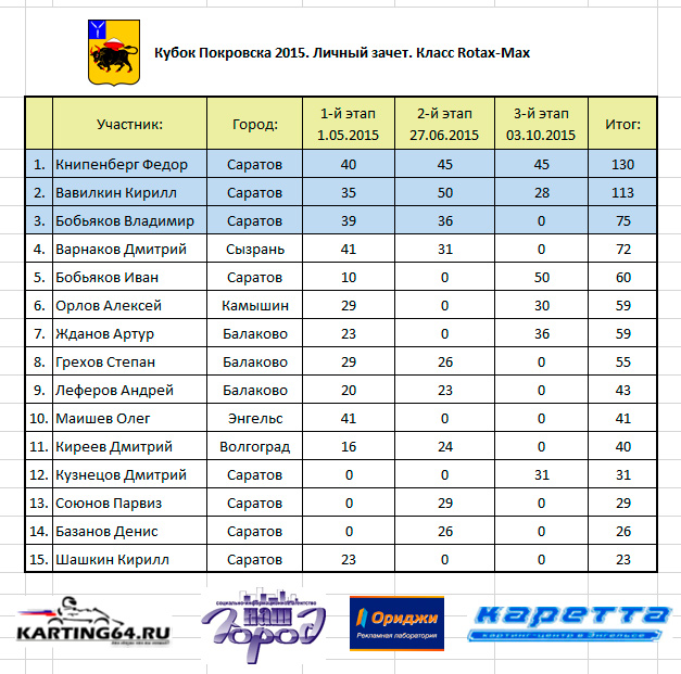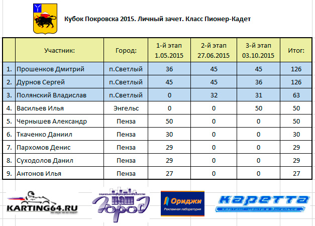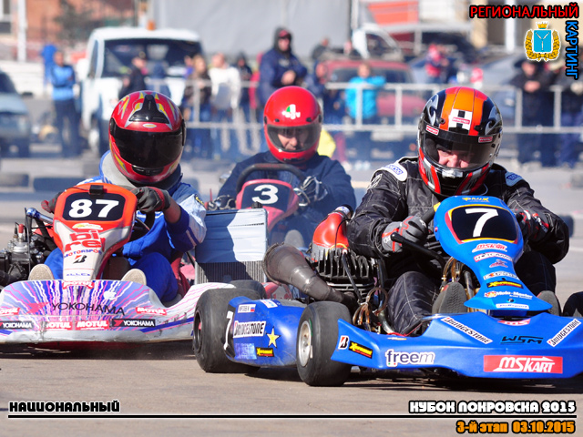 3 октября 2015 года состоялся 3-й этап многоэтапного чемпионата по Картингу – Кубок Покровска 2015. Чемпионат примечателен тем, что впервые, более чем за 30-ти летнюю историю Энгельсских соревнований, он проводился при сотрудничестве с Саратовским отделением Российской Автомобильной Федерации. Саратовское отделение РАФ’а присоединилось к Кубку на втором (летнем) этапе. Это стало одним из самых больших изменений за всю современную историю Покровских соревнований. Как всегда и бывает – мнения участников, спортсменов и болельщиков по этому поводу разделились как на прямо противоположные, так и на более нейтральные. Радикальную позицию непризнания, т.е. в глубокую оппозицию, ушли в основном “бывалые” спортсмены, привыкшие к правилам, а точнее их отсутствию, на протяжении всей современной истории областного и около-областного картинга. Оппозиционерам не понравилось всё новое – документальная часть, организационная, пускай на первых порах и довольно формальный, но все же – техосмотр, даже конфигурация трассы попала под раздачу – чего не было на Энгельсских соревнованиях ниразу. Разгорячившиеся спортсмены клеймили всех и вся – досталось даже приглашенным “Российским звездам” картинга – семейному подряду Густешовых, которым недвусмысленно предложили “ехать обратно в Москву, и собирать деньги там”. Видимо многие приезжие участники находятся “не в теме” – не зная, что тренд нынче – ехать как раз из Москвы в Саратов…