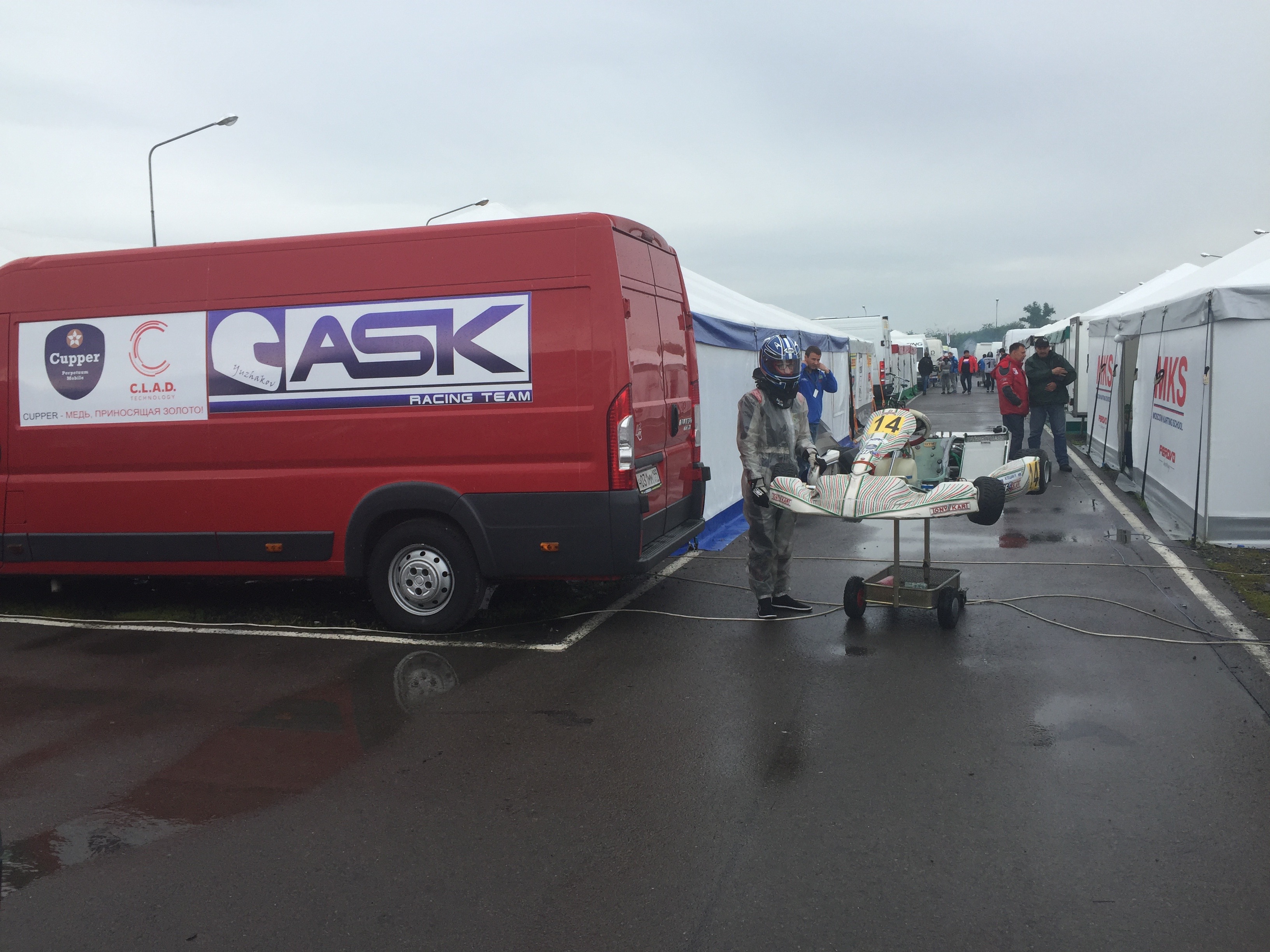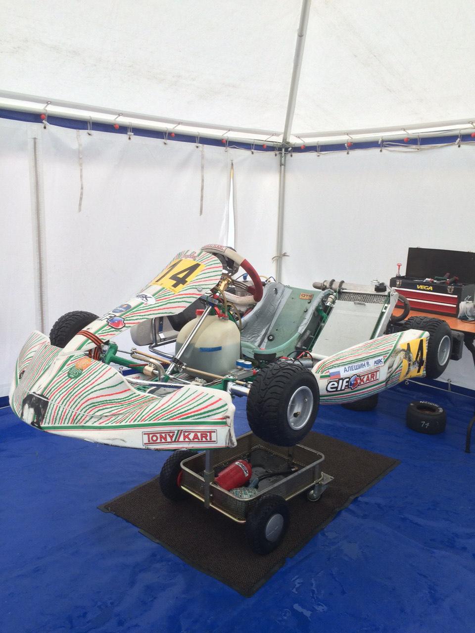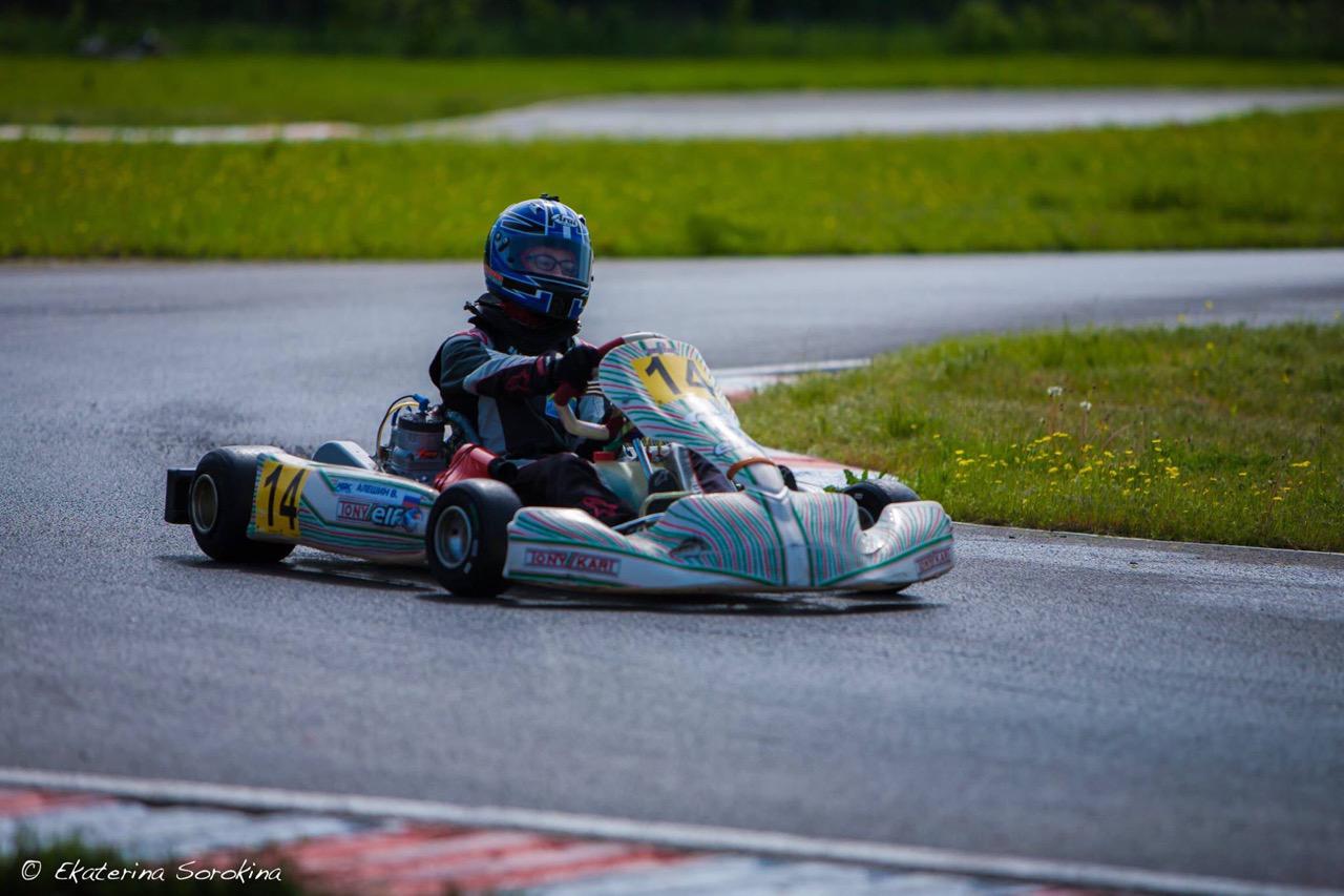 ![]() Рассказывает Алексей Алёшин. Второй этап Первенства и Чемпионата России выдался непростым по погодным условиям. Однако очень представительным. В нем приняло участие 138 спортсменов в шести классах. В классе KFj выступали тридцать гонщиков. В пятницу по очень мокрой трассе Вова ехал плохо, проигрывая лидеру до 5 секунд, 24-м и даже 26-м из 30-ти участников. Тогда как на сухом асфальте в тренировках ехал 8-м. Однако, после установки новой дождевой резины под дождём смог по скорости квалифицироваться 16-м. А после пенализирования трёх участников оказался 14-м. ![]() В ночь на субботу шёл сильный дождь и с утра трасса была очень мокрой. На прогреве Вова ехал неуверенно и за три минуты до окончания заезда “убрался” в грязь. По итогам прогрева оказался 20-м. Долго потом все мыли машину и пилота. В первом “хите” Вова стартовал 10-м, после удачного старта на первом круге шёл 8-м. Но быстро пропустил вперёд “паровозик” из трёх машин и стал 11-м. Потом кого-то обогнал, кто-то поскользнулся по мокрому и пропустил. За три круга до окончания заезда Вова был 9-м и уверенно держался. Но ошибка на последнем круге чуть не стоила ему полного вылета. Пара пилотов сзади успела подъехать и в последнем повороте последнего круга Вова пропустил одного пилота. В итоге финишировал 10-м, отстояв свою стартовую позицию. После разбора заезда судьями Вова оказался 9-м. ![]() Второй “хит” не очень задался. Буквально перед самым стартом гонку объявили “сухой” и механики бросились менять дождевую резину на слики. После прогревочного круга пилоты не успели выстроиться на свои места и был объявлен фальстарт. Руководитель гонки остановил пелетон. Все выстроились на стартовой решётке и получили нагоняй. А потом двое не смогли завести свои моторы, и Вова в том числе. Он бросился в погоню уже порядочно отстав от всех. Ему повезло, идущие впереди пилоты боролись между собой и дали возможность подъехать и атаковать. В результате на финише Вова был 14 из 20. В итоге (напоминаю, что на Чемпионате и Первенстве России стартовая решётка на первом финале определяется не квалификацией, а по результатам отборочных заездов) Вова оказался 18-м. Точнее говоря, три пилота набрали одинаковое величество очков (23). И судьи распределили их согласно результатам квалификации. Однако, Сергей Григорьевич обратил внимание, что при одинаковом количестве набранных очков по Регламенту соревнований в зачёт идёт победа в личном противостоянии. И хотя Вова по итогам квалификации был ниже этих двух пилотов, по итогам личных встреч он был выше. И судьи согласились с этим, пересчитав итоговое положение. Таким образом Вова оказался 16-м на стартовой решётке первого финала в воскресенье. ![]() Ночью в воскресенье дождя не было. С утра иногда на несколько минут выглядывало солнце. Трасса была сухая, но очень грязная и из-за этого очень скользкая. Прогрев начали машины класса Мини. И им досталось “убирать” глину с асфальта. Многие скользили, разворачивались, одна машина улетела в траву. Следом выехал KFj и принялся бодренько подметать трассу. За десять минут заезда время улучшилось больше чем на десять секунд. Вова закончил на 8-м месте по скорости. Первый финал поехали посуху, но тучи буквально ходили вокруг картодрома и нервировали судей, пилотов и зрителей. Несколько капель упали во время заезда, но не испортили сухой гонки. С