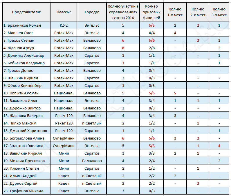 Наш старый канал на YouTube. Канал на Youtube Фёдора Книпенберга. Интересные видео с соревнований в Новой Майне 2014 Канал на Youtube Айгумова Умара. Интересные картинговые видео 2014. Преимущественно прокатный картинг Канал на Youtube Рудева Виктора. Много интересных областных видео-оригиналов. Сезоны 2010-2012 Фотоальбомы прошедших региональных соревнований 2014 ![]() ![]() ![]() ![]() ![]() Вот и подошел к концу один из самых сложных за последнее время Региональных сезонов – сезон 2014. Сезон смелых надежд, и грустных разочарований. Триумфальный для одних, и неоднозначный для других. В первую очередь хочется сказать о том, что не получилось в этом сезоне. Конечно на первом плане – Хвалынск. Впервые за последние несколько лет эти соревнования не состоялись, а ведь именно “Поволжское лето” всегда считалось изюминкой Саратовского Регионального сезона. В сезонах 2005,2006, 2007, 2009 – Хвалынские соревнования даже включались в официальный календарь Всероссийских соревнований. Этакий праздничный экватор каждого из прошлых сезонов. Прошлых – но, похоже, не настоящих. Трудности с которыми сталкивался бессменный организатор Хвалынских соревнований – Спартак Владимир, как снежный ком росли из года в год, из сезона в сезон. В этом году терпению и энтузиазму пришел закономерный конец. Конечно не последнюю роль в этом сыграл уход Анастасии Спартак из Саратовского автоспорта, и смена интересов у её сестры – Спартак Екатерины. Похоже, мы потеряли одну из самых ярких гонок Саратовского картинга. Вернется ли Хвалынск в неофициальный “Саратовский календарь” соревнований 2015? Вопрос, на который в настоящее время ответа нет. Возможно воскрешению этих соревнований может поспособствовать одна идея - которая сейчас находится на стадии проработки в головах “верхушек Саратовского картинга”. Но говорить об этом пока рано. Вторая неудача Саратовского картинга в этом году – несостоявшиеся Балаковские соревнования. “Балаковская осень 2014” – так должно было называться одно из самых неожиданных, и в тоже время - всеми долгожданное соревнование. Действительно, последний раз г.Балаково принимал у себя соревнования по Спортивному картингу 10 лет назад – в 2004-м году. Новое покрытие центральной площади города обещало собрать огромное количество спортсменов из различных регионов России. Но и здесь возможность была упущена. Главной причиной стала несостыковка даты проведения соревнования – в последний момент стало известно, что в намеченный воскресный день на центральной площади города развернется осенняя ярмарка. И формально ярмарку утвердили гораздо раньше, чем идея “Балаковской осени 2014” зародилась в головах у местных картингистов. Здесь есть положительный момент – время для планирования даты проведения соревнований в сезоне 2015 вполне предостаточно, энтузиазма у Балаковских представителей не занимать, заинтересованность местной администрации находится выше нулевой отметки – что стоит расценивать как отлично! Похоже, гонка в Балаково в сезоне 2015 может пойти дальше пустых разговоров в среде фанатичных спортсменов, и если это событие состоится - это стоит расценивать как настоящую победу Балаковских спортсменов над “злым роком” висевшим над Балаковскими соревнованиями целых 10 лет! Безусловно это событие даст старт новой, современной истории Балаковского картинга. А пок
